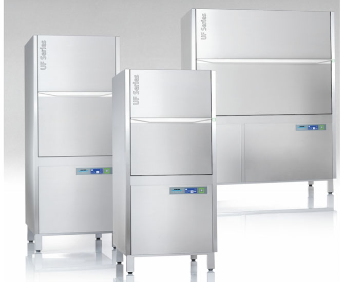 Каждый, кто в своей кухне работает с белком или крахмалом, знаком с этой проблемой: При включении машинного (т.е. горячего) процесса мойки без предварительного очищения холодной водой остатки запекаются и прилипают. Поэтому серия UF предлагает возможность ополаскивания холодной водой – при помощи нажатия всего одной кнопки!