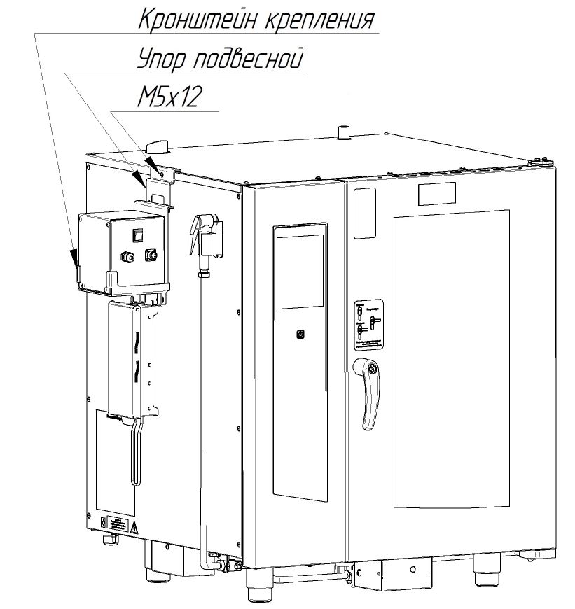 Данный способ установки имеет зеркальный тип - возможность установки как с правой, так и с левой стороны пароконвектомата.