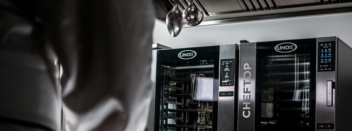 Линейка пароконвектоматов UNOX CHEFTOP MIND.Maps – абсолютная новинка на рынке, ломающая стереотипы. Это профессиональные печи с возможностью полной интеграции в меню вашего ресторана. С помощью новой технологичной панели управления дает возможность записать рецепт блюда до мельчайших подробностей в память пароконвектомата, а пошаговая отчетность о приготовлении блюда позволяет довести рецепт до совершенства. Таким образом, вы можете внести полное меню ресторана в память печи.