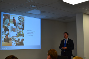 Вторая часть программы проходила в конференц-зале гостиницы BONN HOTEL, в ходе которой были представлены презентации руководителя «Компании Эндвест» - Еременко А.В и технолога Богдановича Д.А, директора завода «Скайтек» , Благодарова-Шамма Л.Д, представителя компании RATIONAL International AG директора по работе с проектами ключевых клиентов, Кристофа Дилгер, регионального директора по продажам ООО «РАЦИОНАЛЬ РУС», Максима Сидорова, и Главы представительства компании Irinox S.p.A., Никиты Жукова.