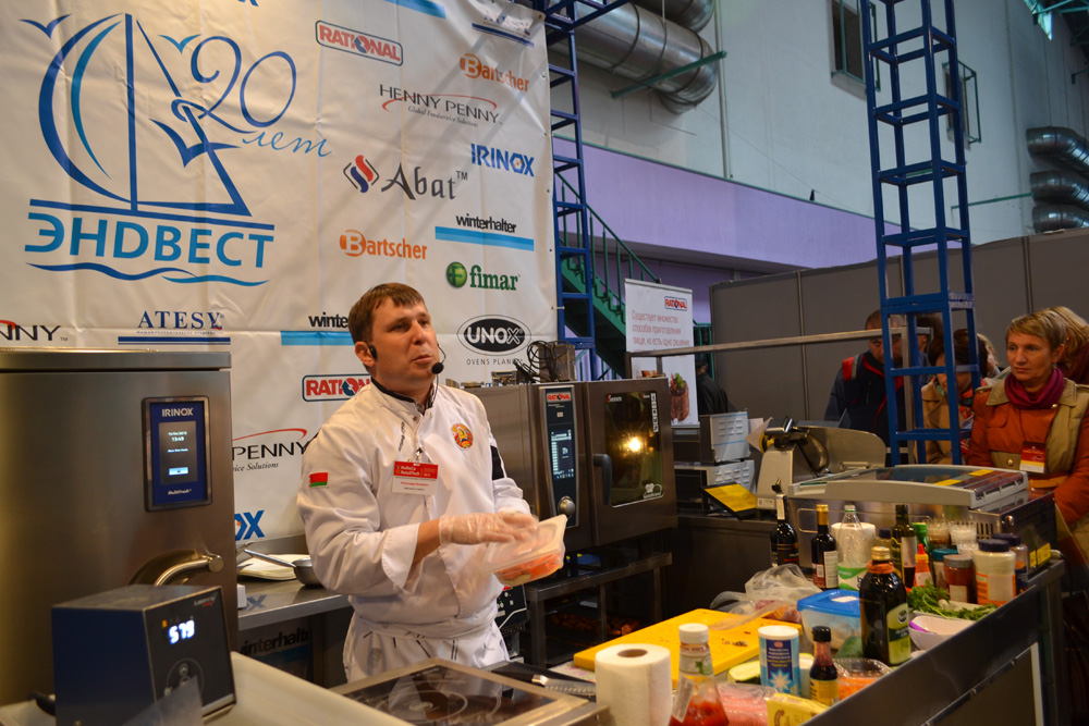 На стенде Компании Эндвест провели мастер-классы белорусские повара Петриман Александр (ресторан Золотой Гребешок).